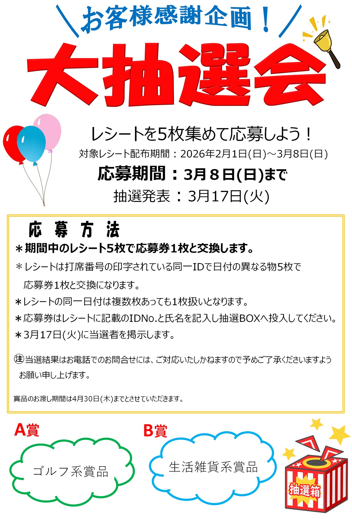 | 休日打席料 | 打席料無料 | 打席料300円 |